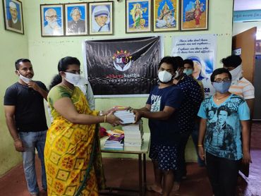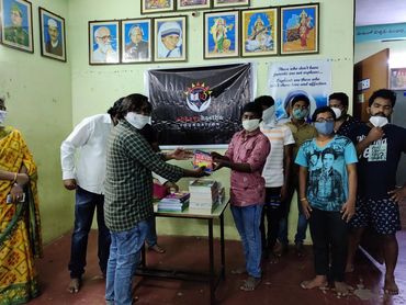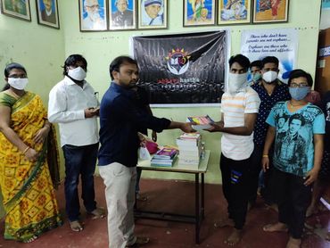 Team Abhayahastha distributed education materials like text books, dictionaries, supplies to students in an Orphange in Warangal .